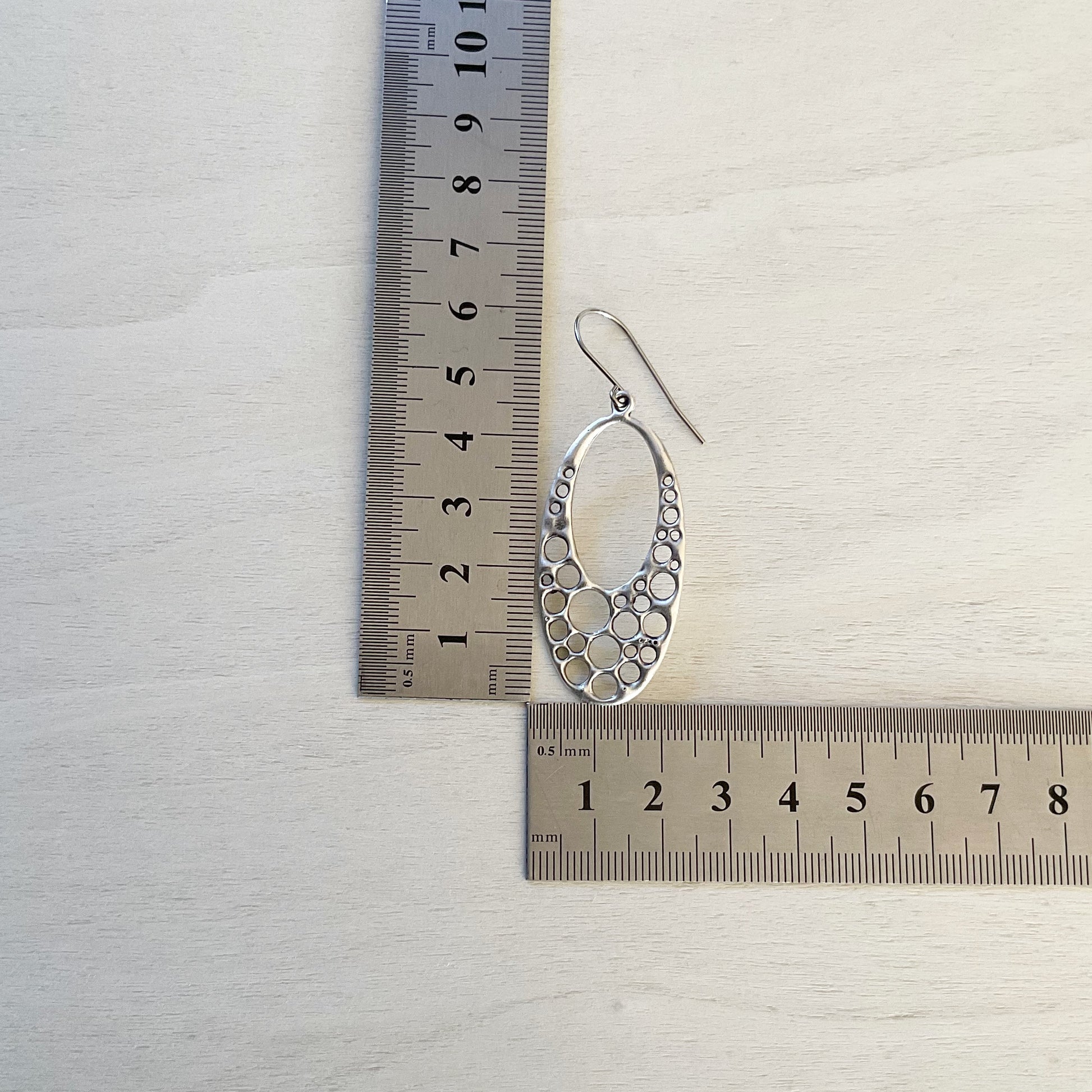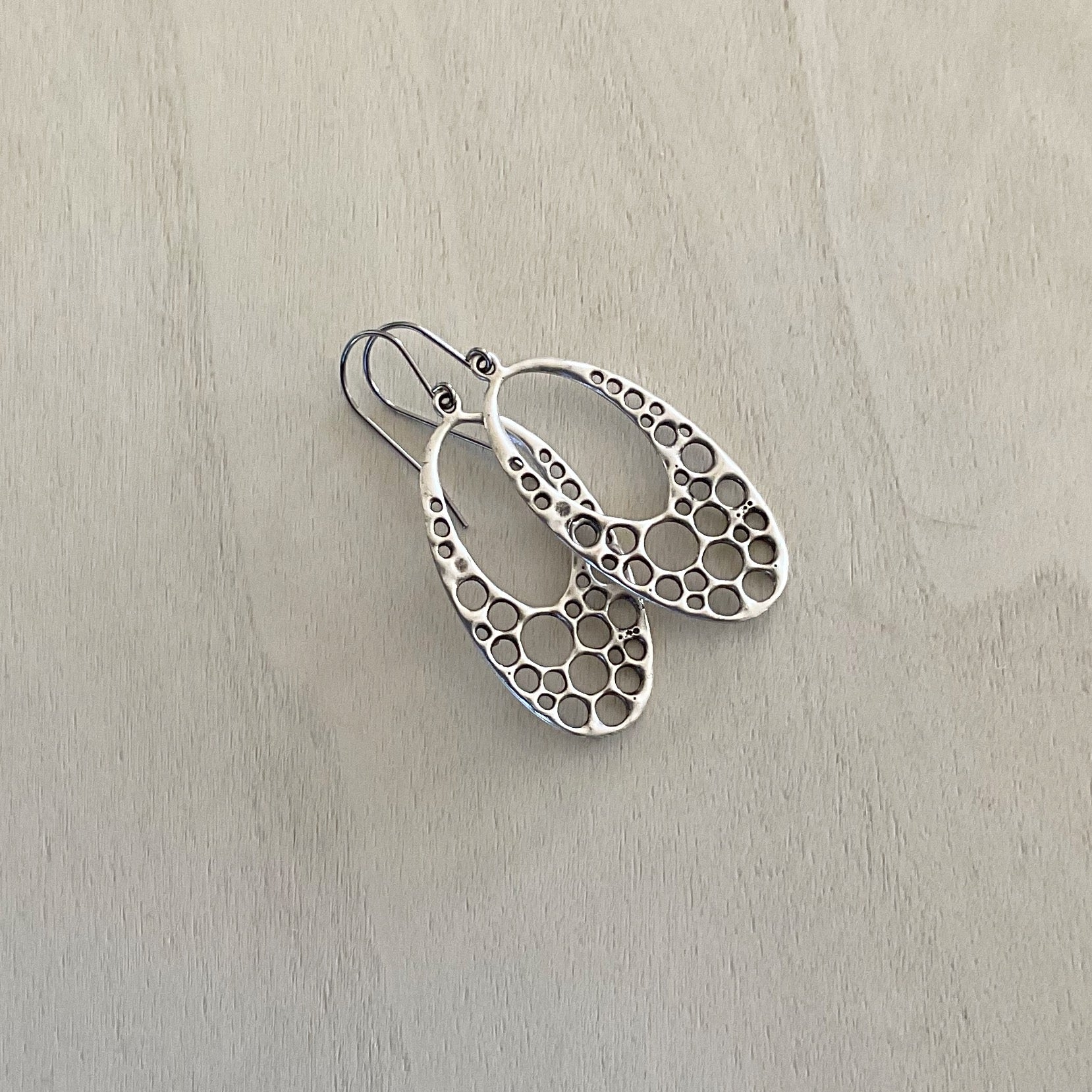 These organic drops are plated in antique silver and then oxidised to bring out the details. They are on hypoallergenic stainless Steel ear wires suitable for even the most sensitive ears - these are the perfect statement earring for anyone who loves nature and artisan jewellery.