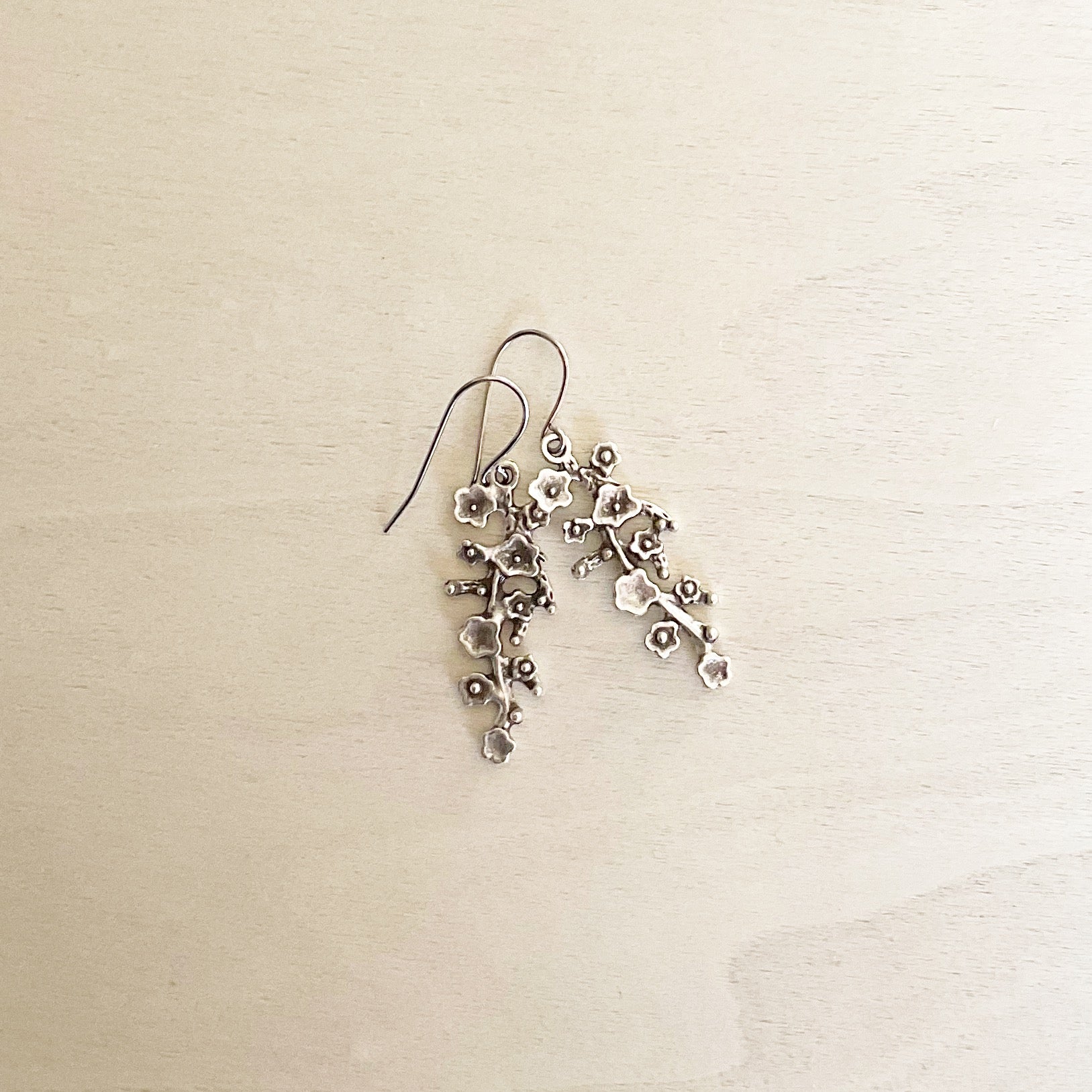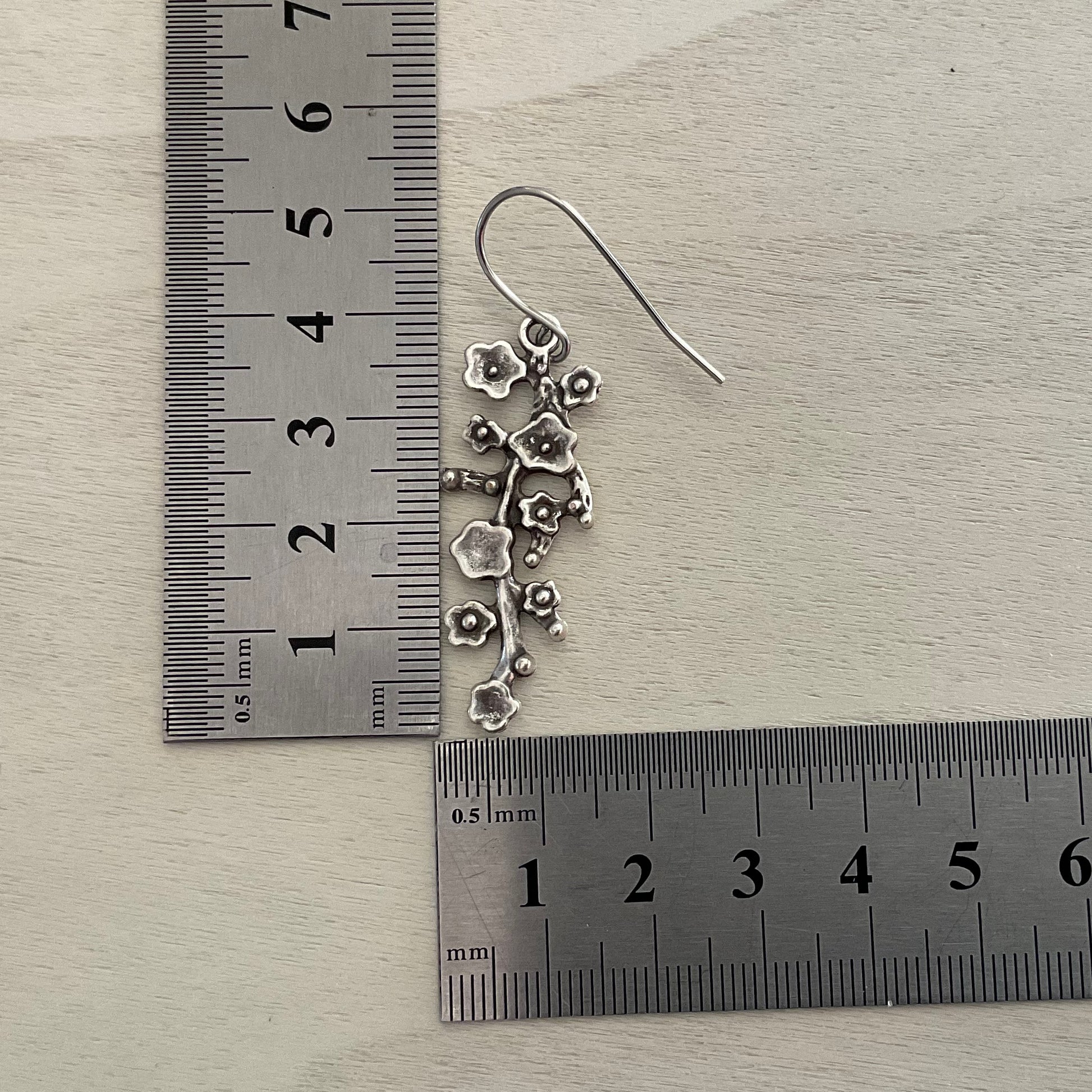 These organic drops are plated in antique silver and then oxidised to bring out the details. They are on hypoallergenic stainless Steel ear wires suitable for even the most sensitive ears - these are the perfect statement earring for anyone who loves nature and artisan jewellery.