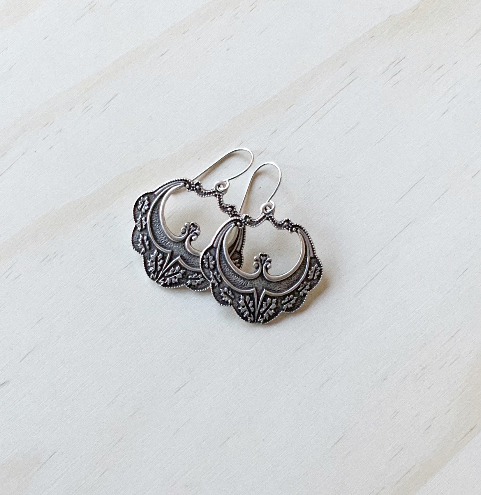 These organic drops are plated in antique silver and then oxidised to bring out the details. They are on hypoallergenic stainless Steel ear wires suitable for even the most sensitive ears - these are the perfect statement earring for anyone who loves nature and artisan jewellery.