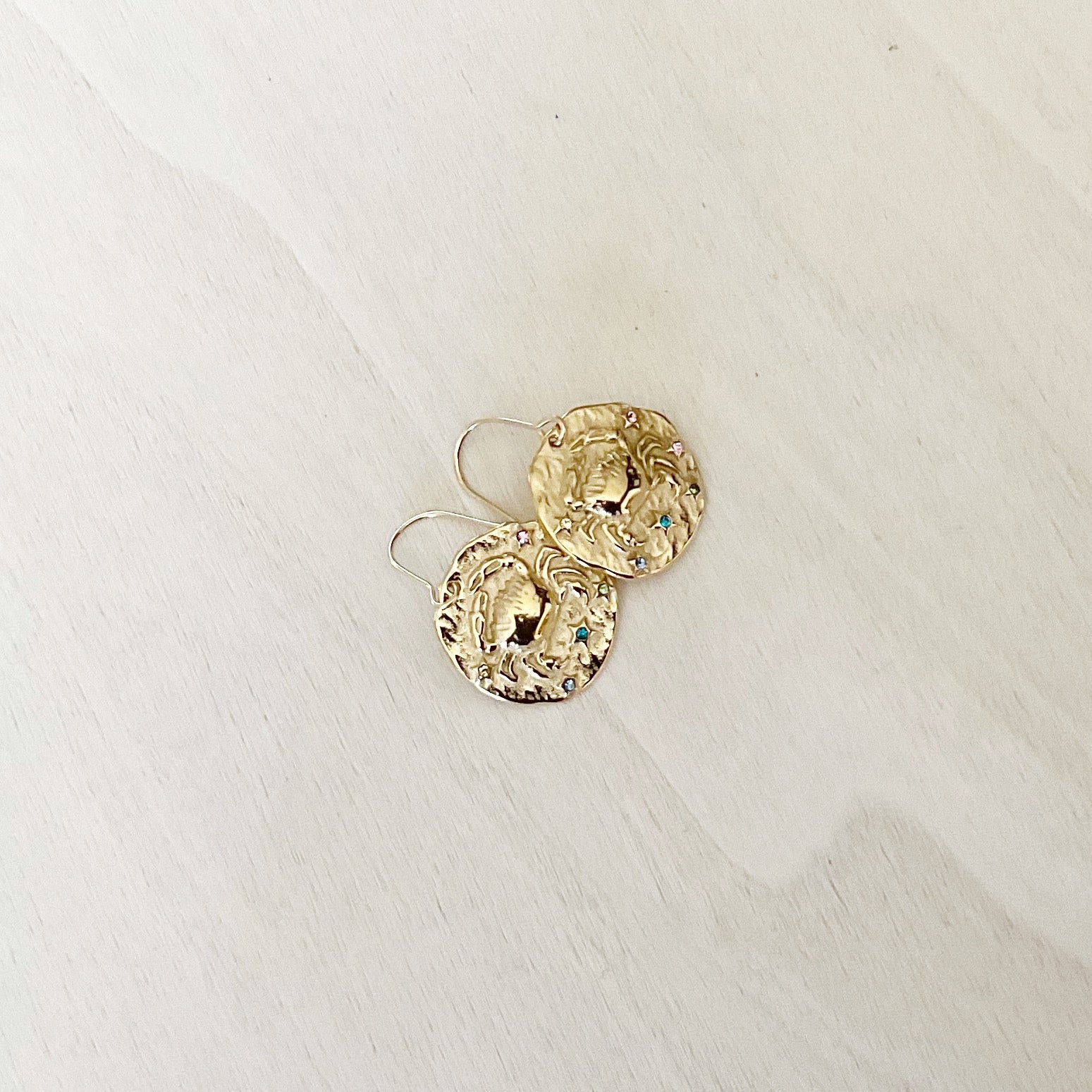 These made to order earrings have been crafted from delicate and ornate brass findings and carefully plated in the finest 16ct gold to give an incredibly beautiful matte finish that highlights every detail.