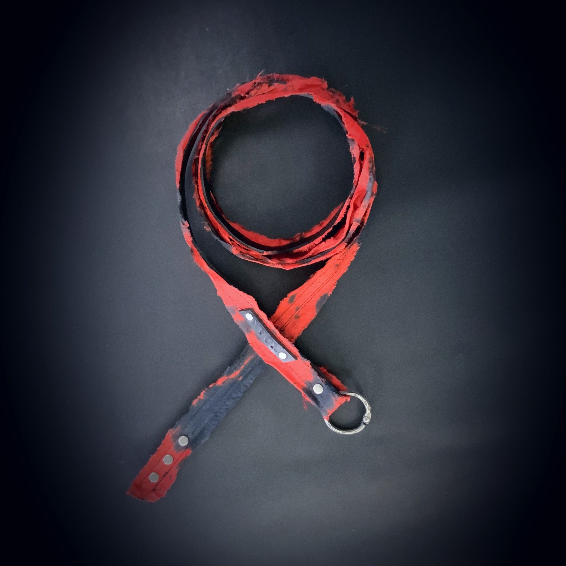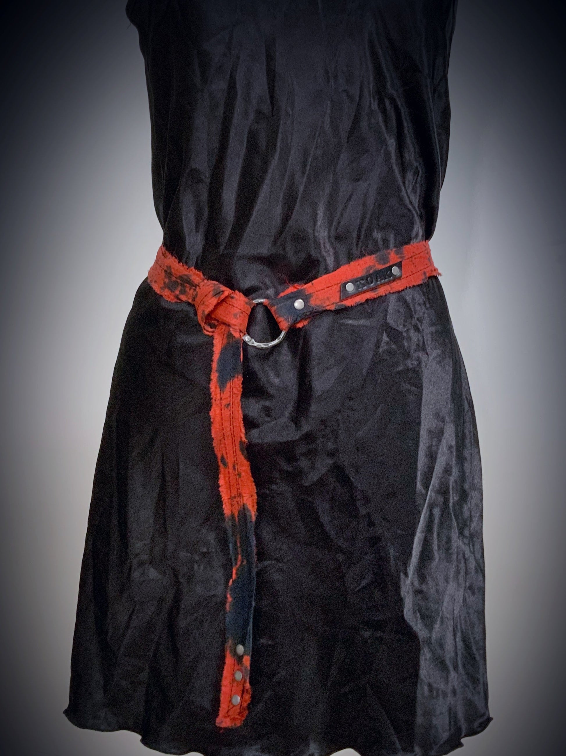 A tapered 1.5 inch steel ring forms the basis for the approximately 2.5 metre belt, that can be fashioned in a knot of your liking.