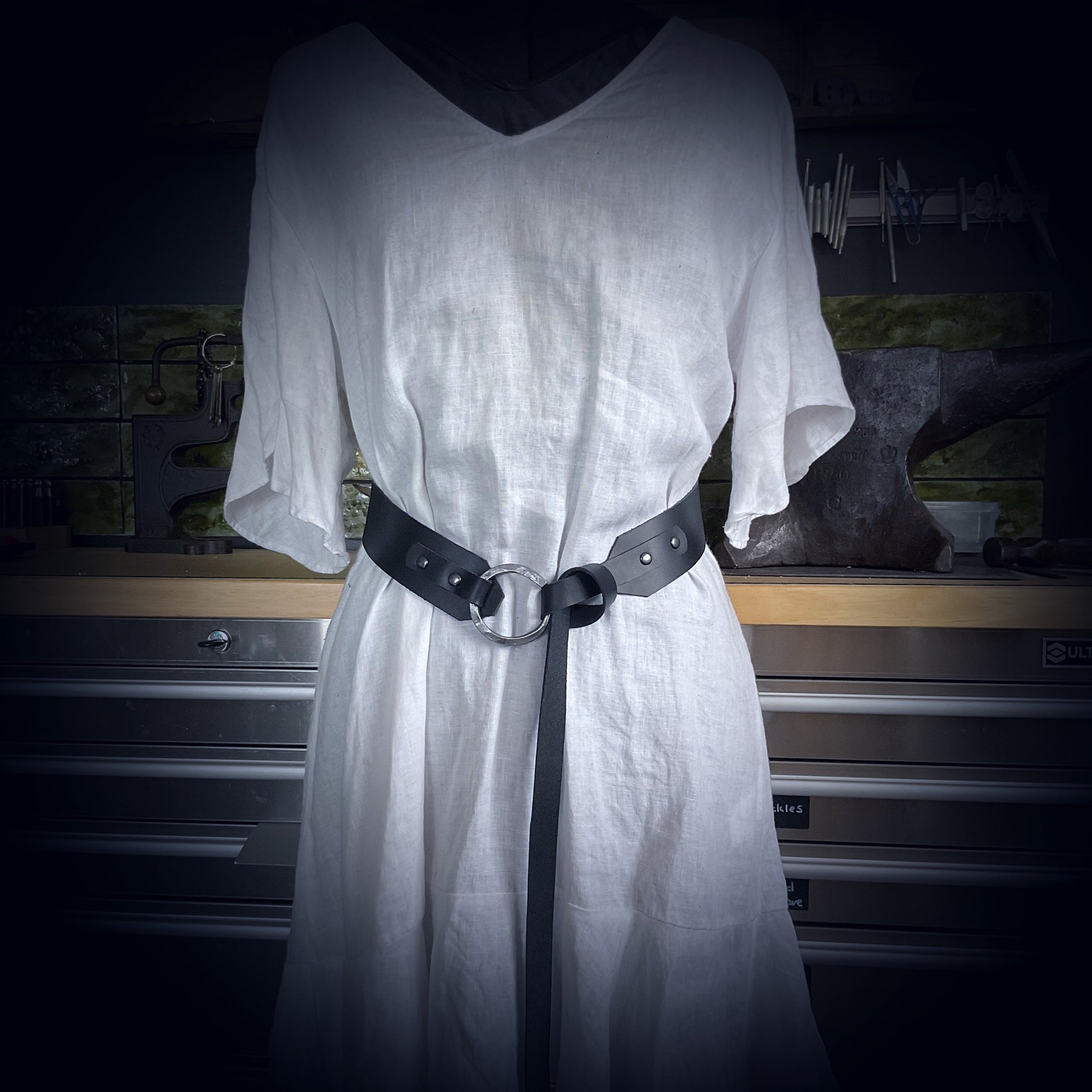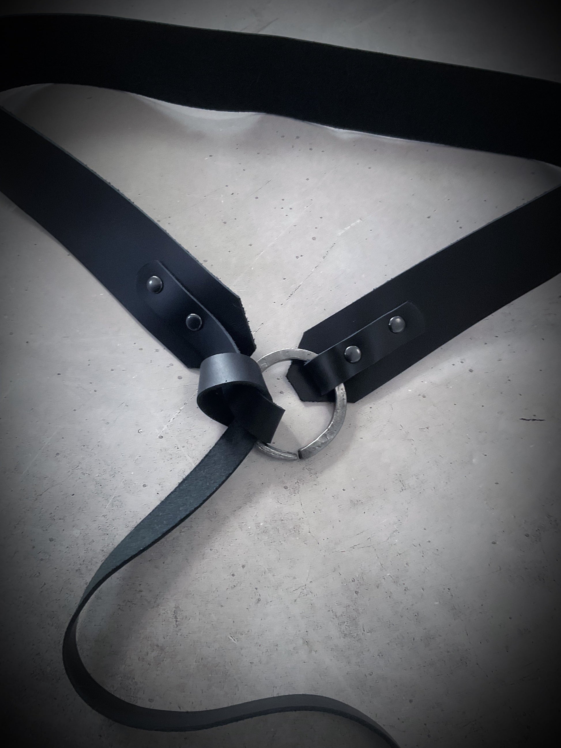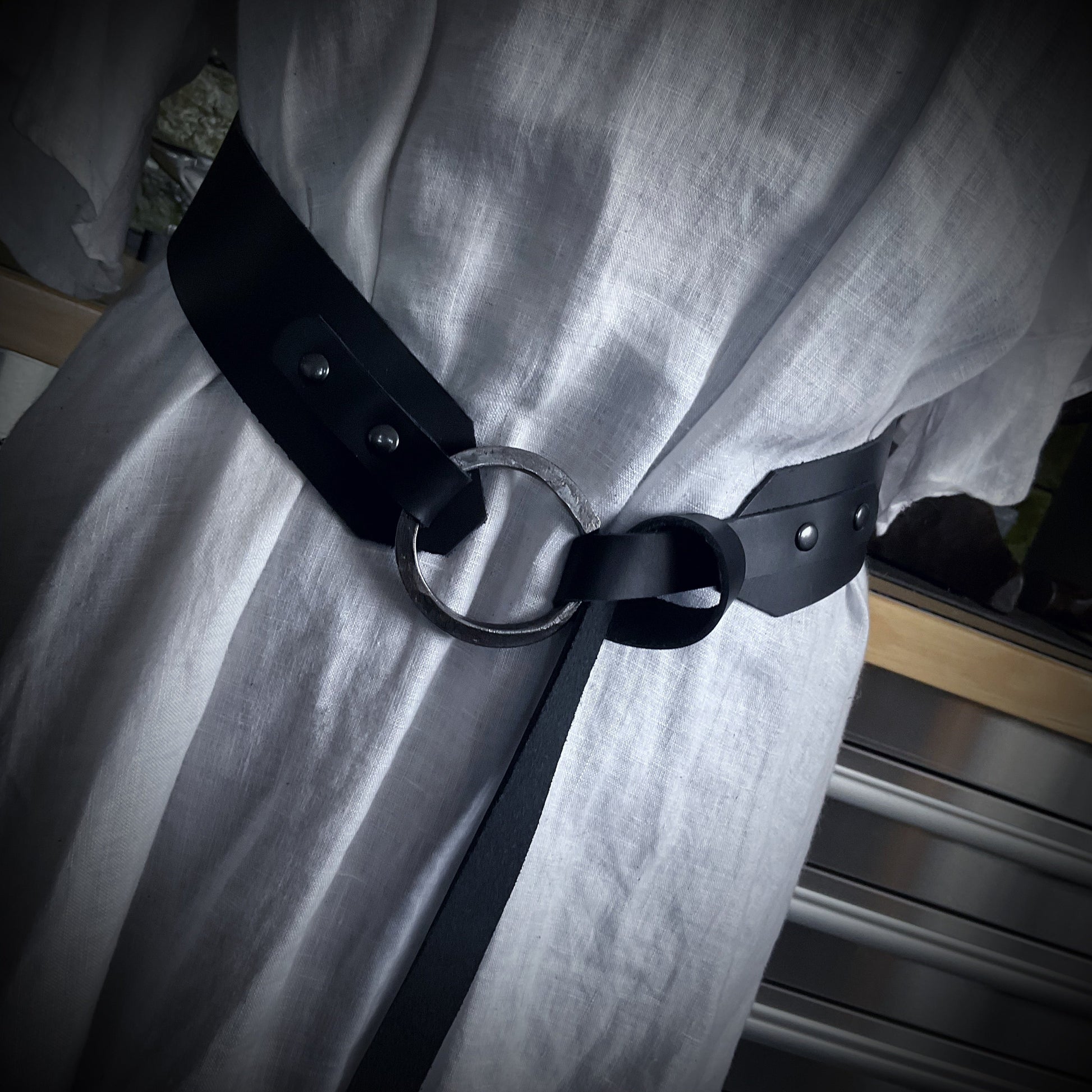A tapered 2 inch tapered steel ring forms the basis for the approximately 1.5 metre belt, that can be fashioned in a knot of your liking.