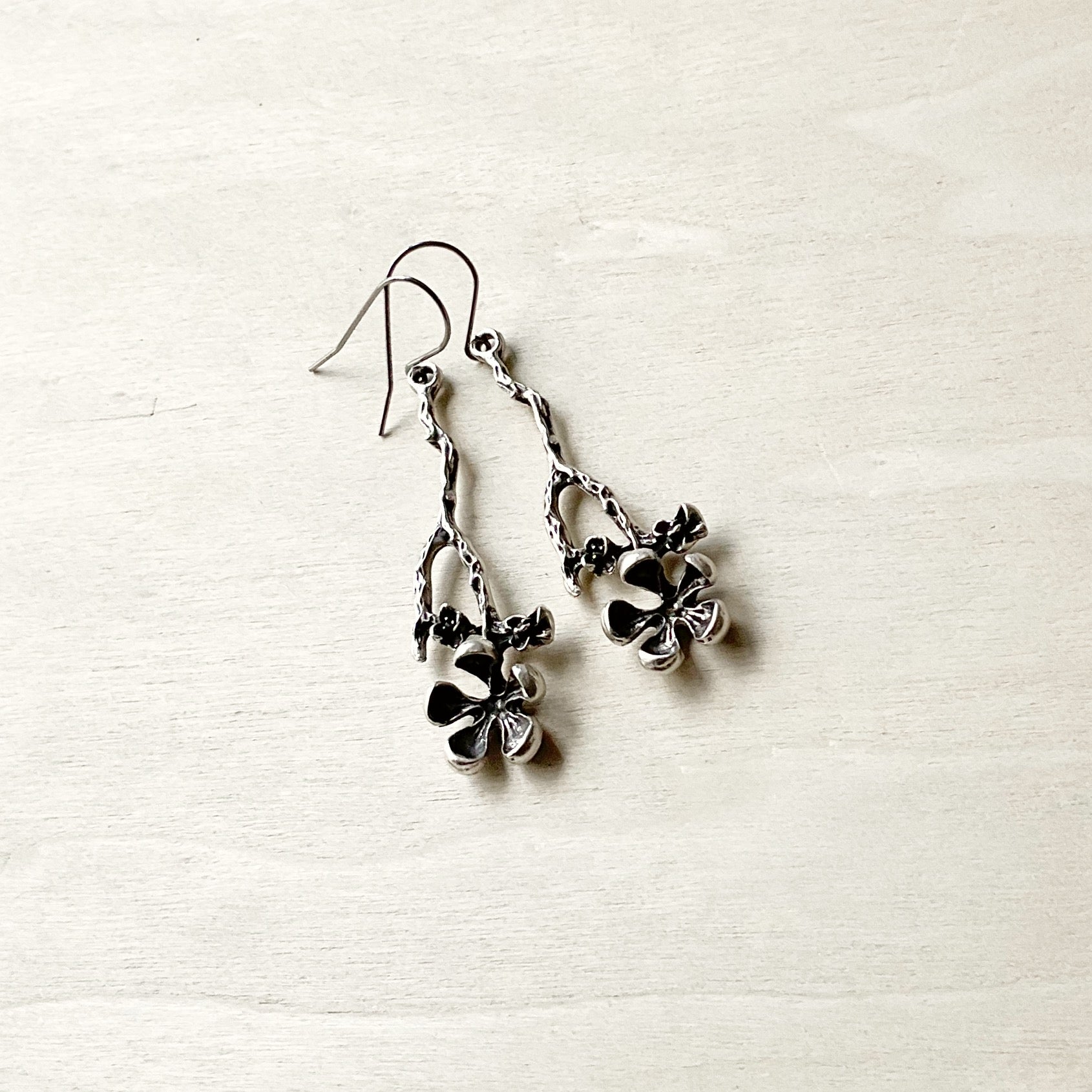 These organic drops are plated in antique silver and then oxidised to bring out the details. They are on hypoallergenic stainless Steel ear wires suitable for even the most sensitive ears - these are the perfect statement earring for anyone who loves nature and artisan jewellery.