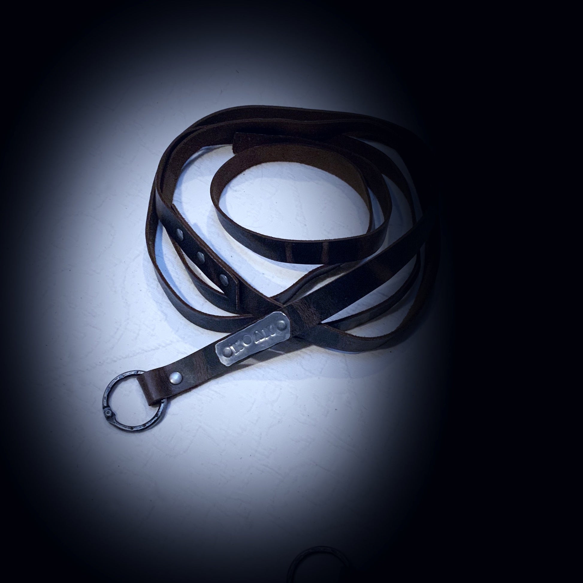 A tapered 1.5 inch steel ring forms the basis for the approximately 2.5 metre belt, that can be fashioned in a knot of your liking.