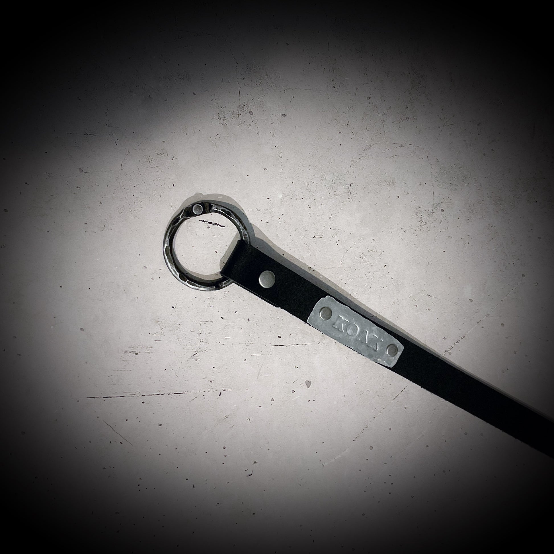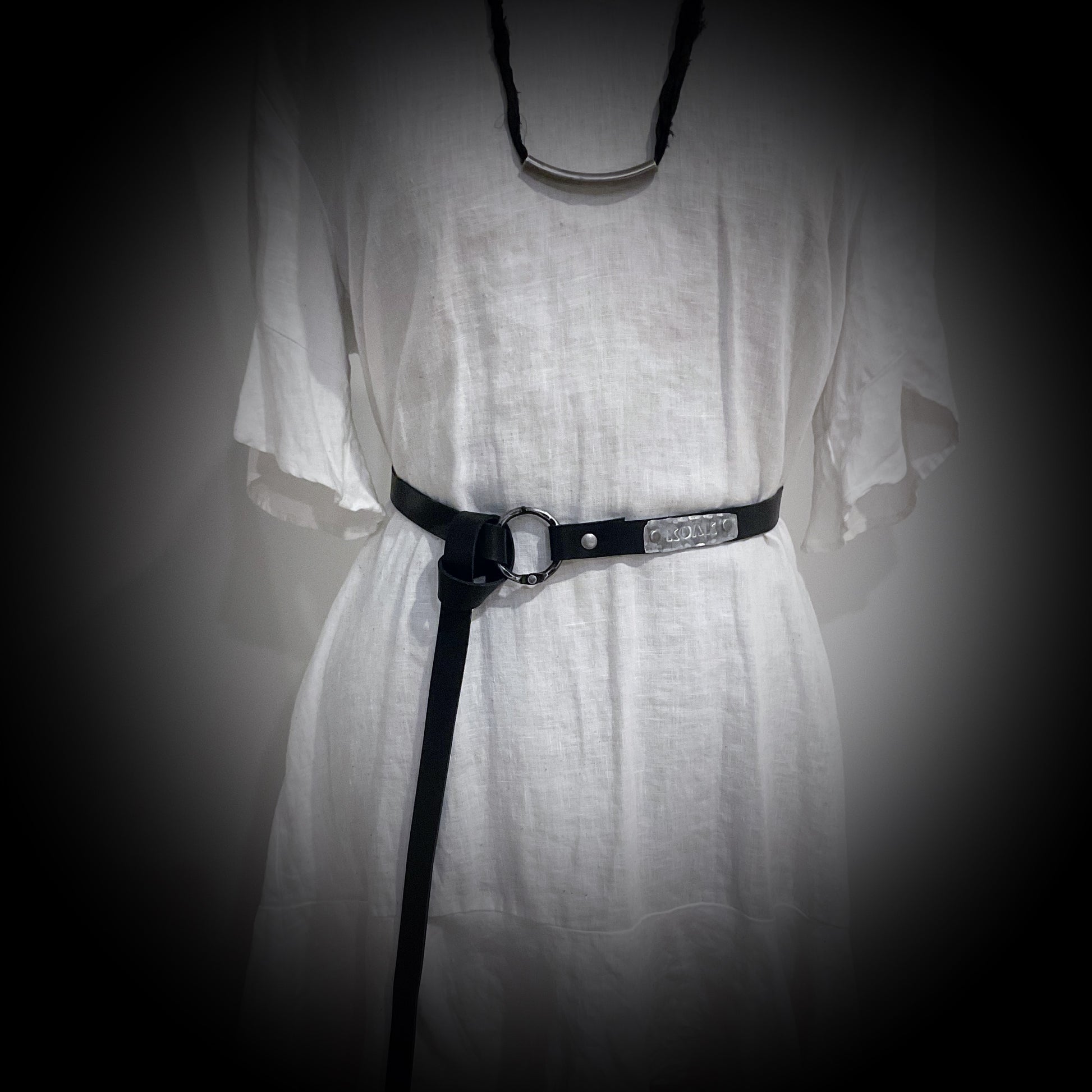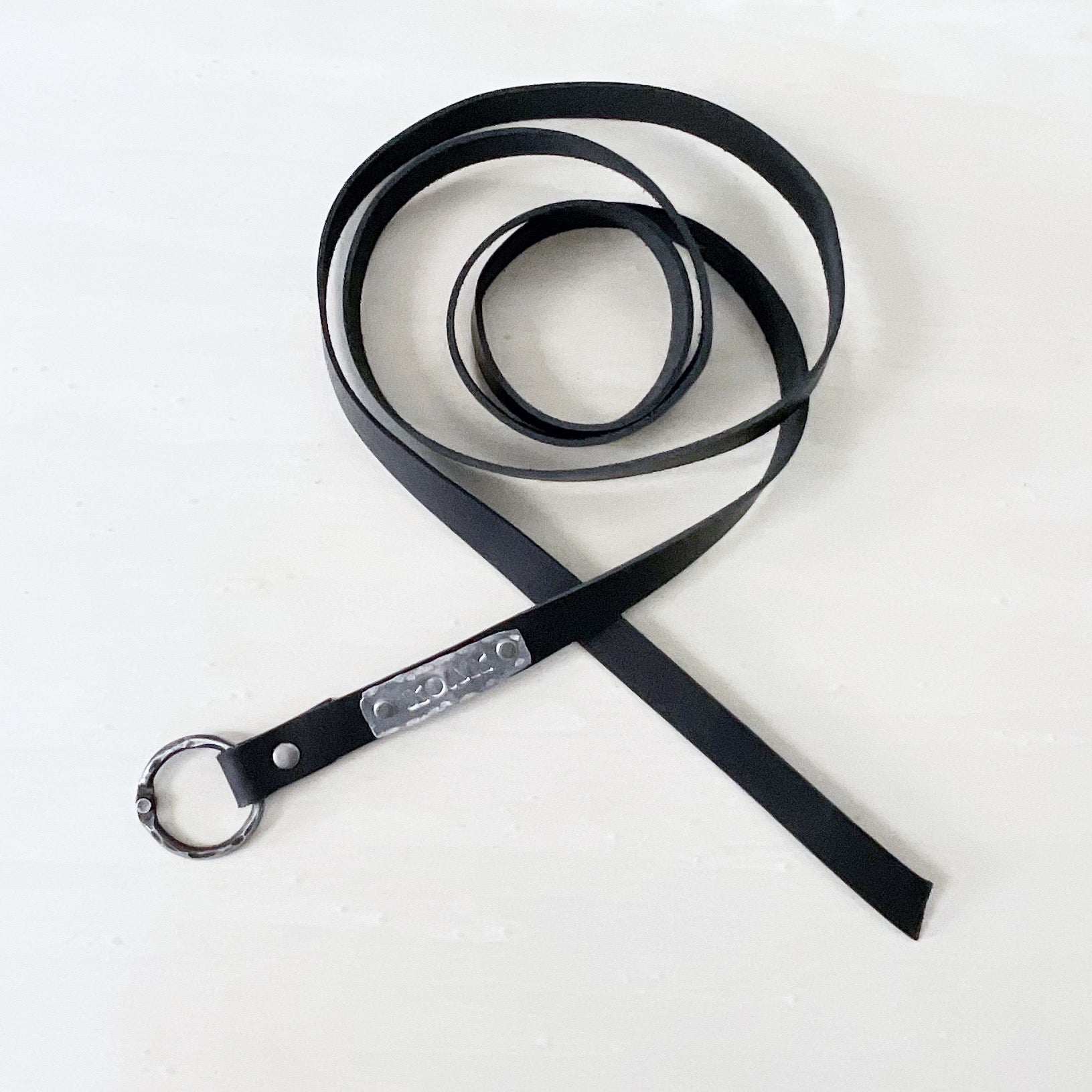 A hand forged 1.5 inch steel ring forms the basis for the approximately 2.5 metre belt, that can be fashioned in a knot of your liking.