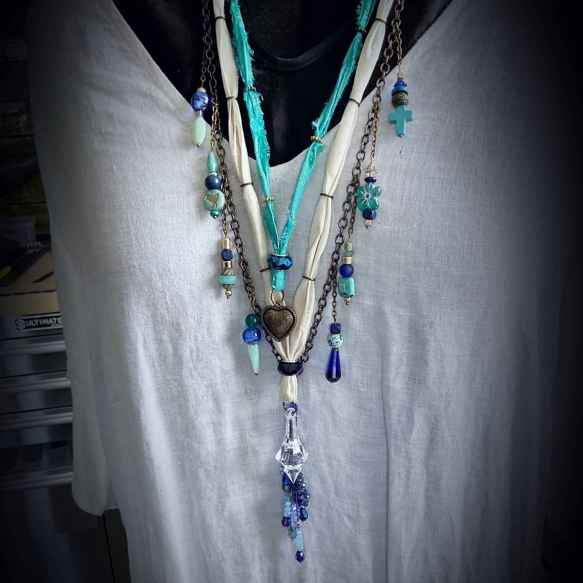 All of those hours I have spent trawling antique shops and stores full of interesting bric-a-brac have finally morphed into these beautiful ‘Neck-mess’ pieces.