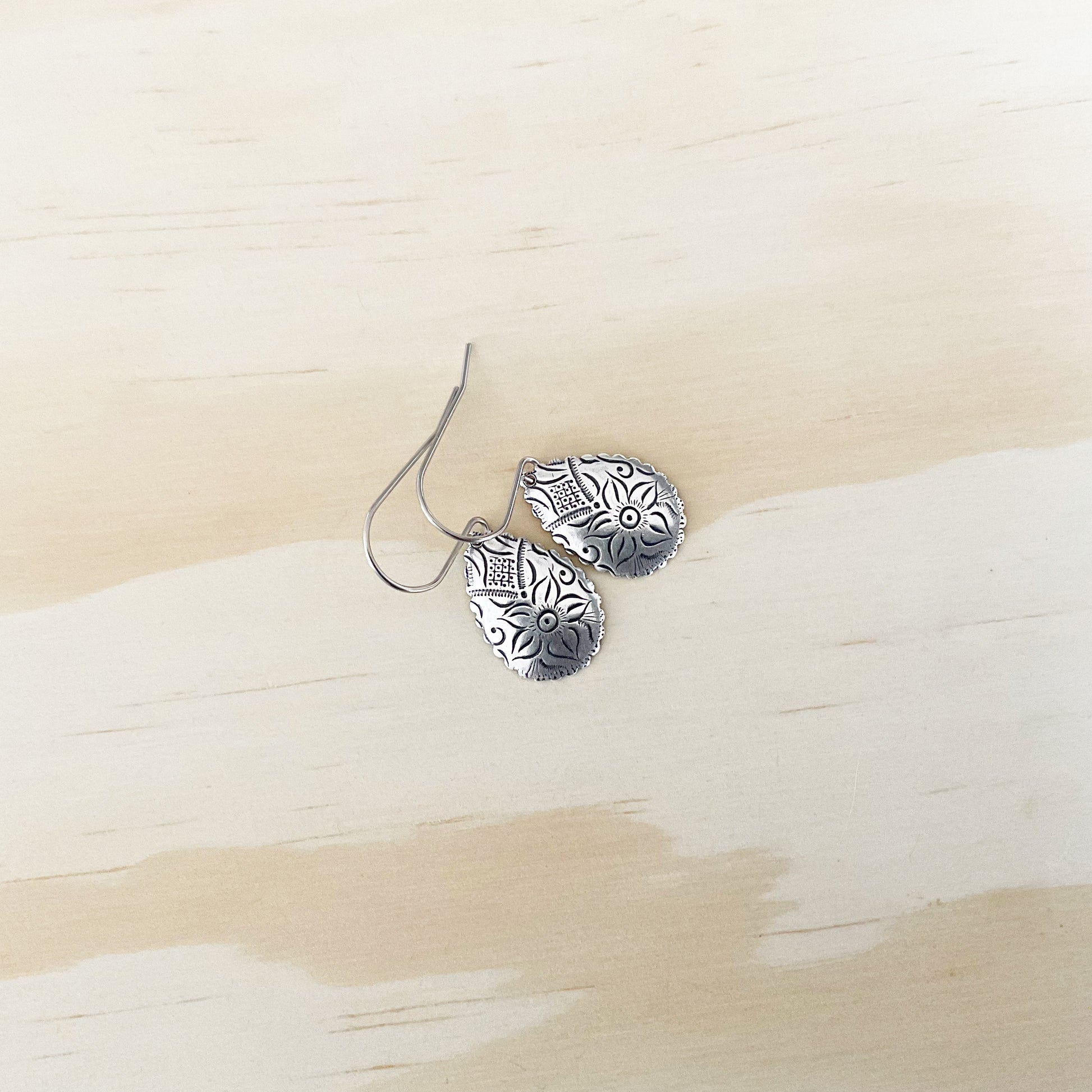 These earrings have been crafted from brass and plated in fine silver (999) then oxidised and sealed to bring out the detail and give that beautiful antique finish.