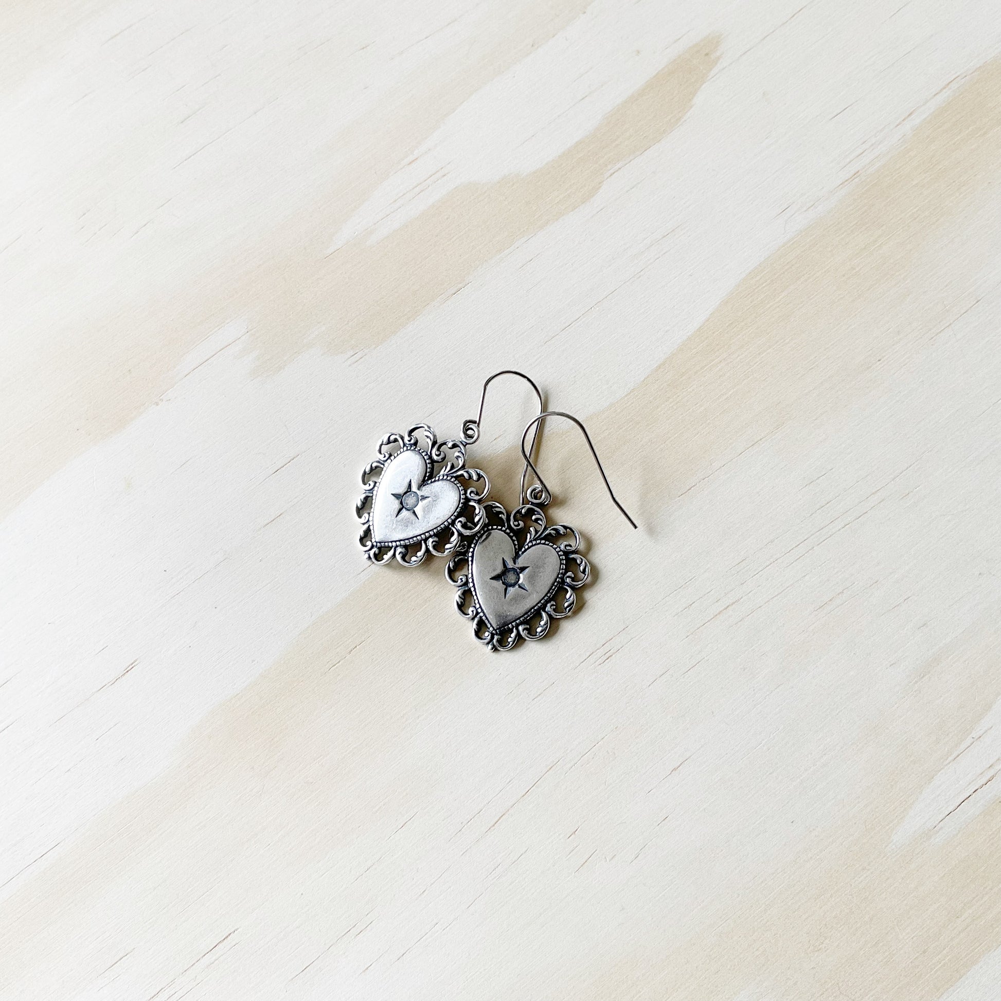 These earrings have been crafted from brass and plated in fine silver (999) then oxidised and sealed to bring out the detail and give that beautiful antique finish.